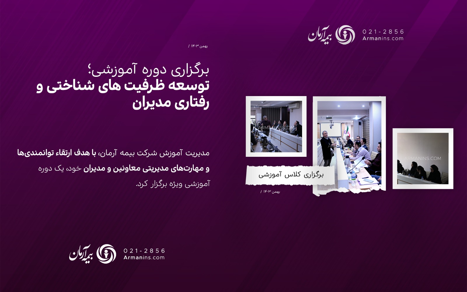 دوره آموزشی ویژه توسط بیمه آرمان با هدف ارتقای مهارتهای مدیریتی برگزار شد.