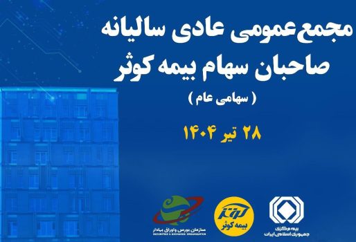 مجمع عمومی عادی سالیانه صاحبان سهام بیمه کوثر، راس ساعت ۸:۳۰ صبح روز شنبه مورخ ۱۴۰۴/۰۴/۲۸ در محل تهران، خیابان سهروردی شمالی، خیابان خرمشهر، پلاک ۲۰۶، ساختمان ستاد مرکزی شماره ۲ بیمه کوثر برگزار میگردد.