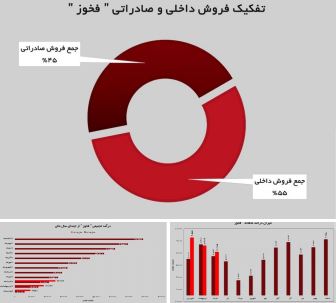 درآمد یادشده حاصل از فروش محصولات فولاد خوزستان در بازار داخلی و خارجی بوده که در این بین، سهمی ۵۵ درصدی را از فروش محصولات آن در بازار داخلی تصاحب کرده است. با این وجود، فروش محصولات “فخوز” در بازار داخلی برابر با ۳ هزار و ۹۶۹ میلیارد تومان به ثبت رسیده است. اما سهم فولاد خوزستان از فروش محصولات در بازار خارجی ۴۵ درصد بوده که معادل ۳ هزار و ۲۱۶ میلیارد تومان است.
