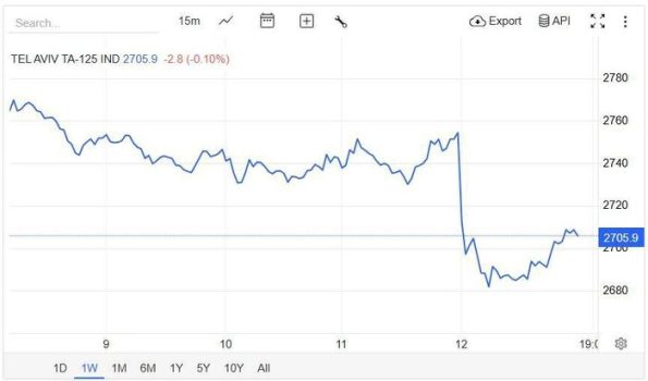 بر اساس آخرین آمار، در پی آغاز حمله ایران علیه رژیم صهیونیستی و هرج و مرج در بازار سرمایه این رژیم، شاخص بورس اسرائیل ۳ درصد ریزش کرده است.