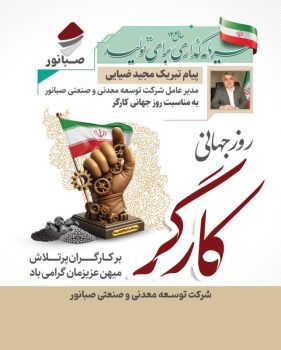 اینجانب ضمن تبریک روز کارگر از درگاه خداوند متعال برای شما همکاران گرامی و خانوادههای ارجمندتان سلامتی، سعادت و توفیق روزافزون مسئلت مینمایم. امید است با همدلی، همراهی و تلاش مضاعف، شاهد تحقق اهداف عالی شرکت و اعتلای جایگاه پرافتخار صبانور در عرصه صنعت و معدن کشور باشیم.