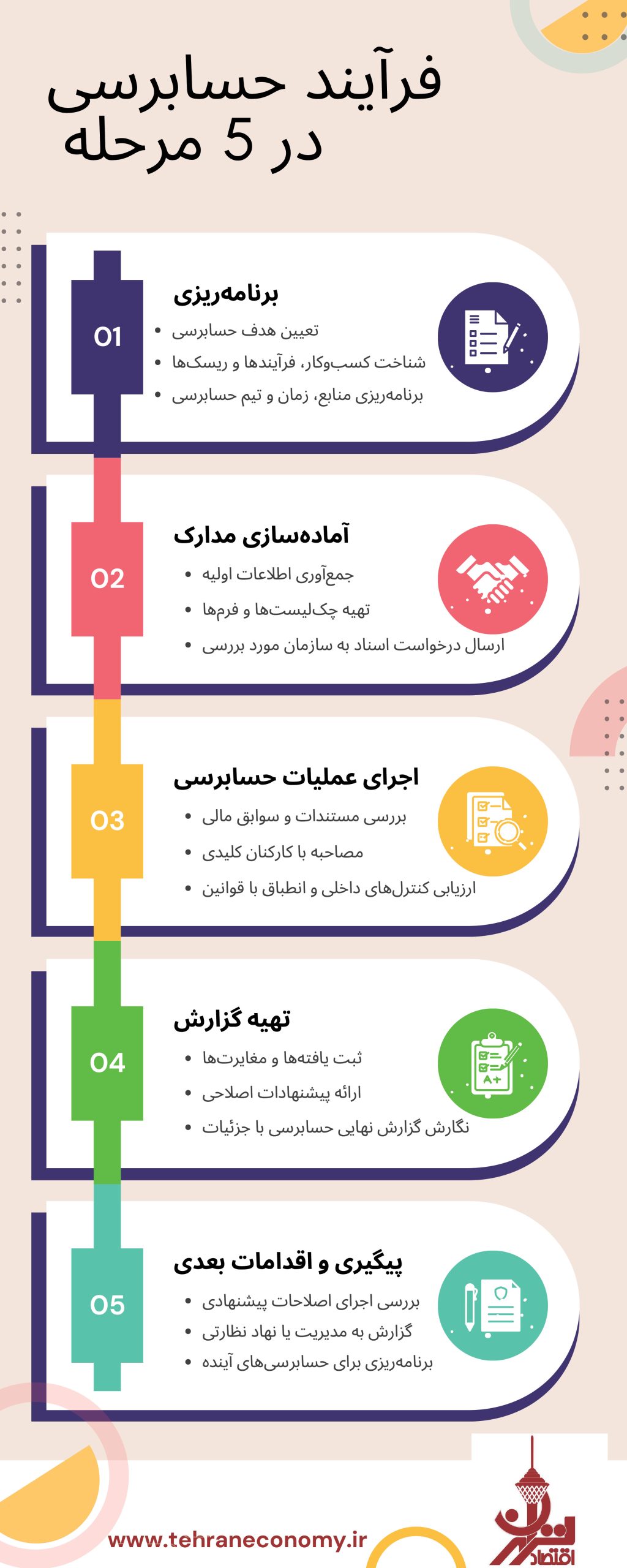 حسابرسی فرایندهای مختلفی دارد که عمده ترین آن 5 مرحله است.
