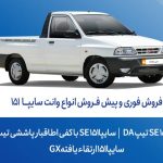 فروش فوری و پیشفروش نقدی وانت سایپا ۱۵۱ از روز یکشنبه ۳۰ شهریورماه آغاز میشود.