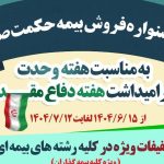 شرکت بیمه حکمت صبا به مناسبت گرامیداشت هفته دفاع مقدس و هفته وحدت، جشنواره ویژهای را با تخفیفات ویژه در تمامی رشتههای بیمهای برگزار میکند. این طرح فروش از تاریخ ۱۵ شهریور ۱۴۰۴ آغاز شده و تا ۱۲ مهر ۱۴۰۴ ادامه خواهد داشت.